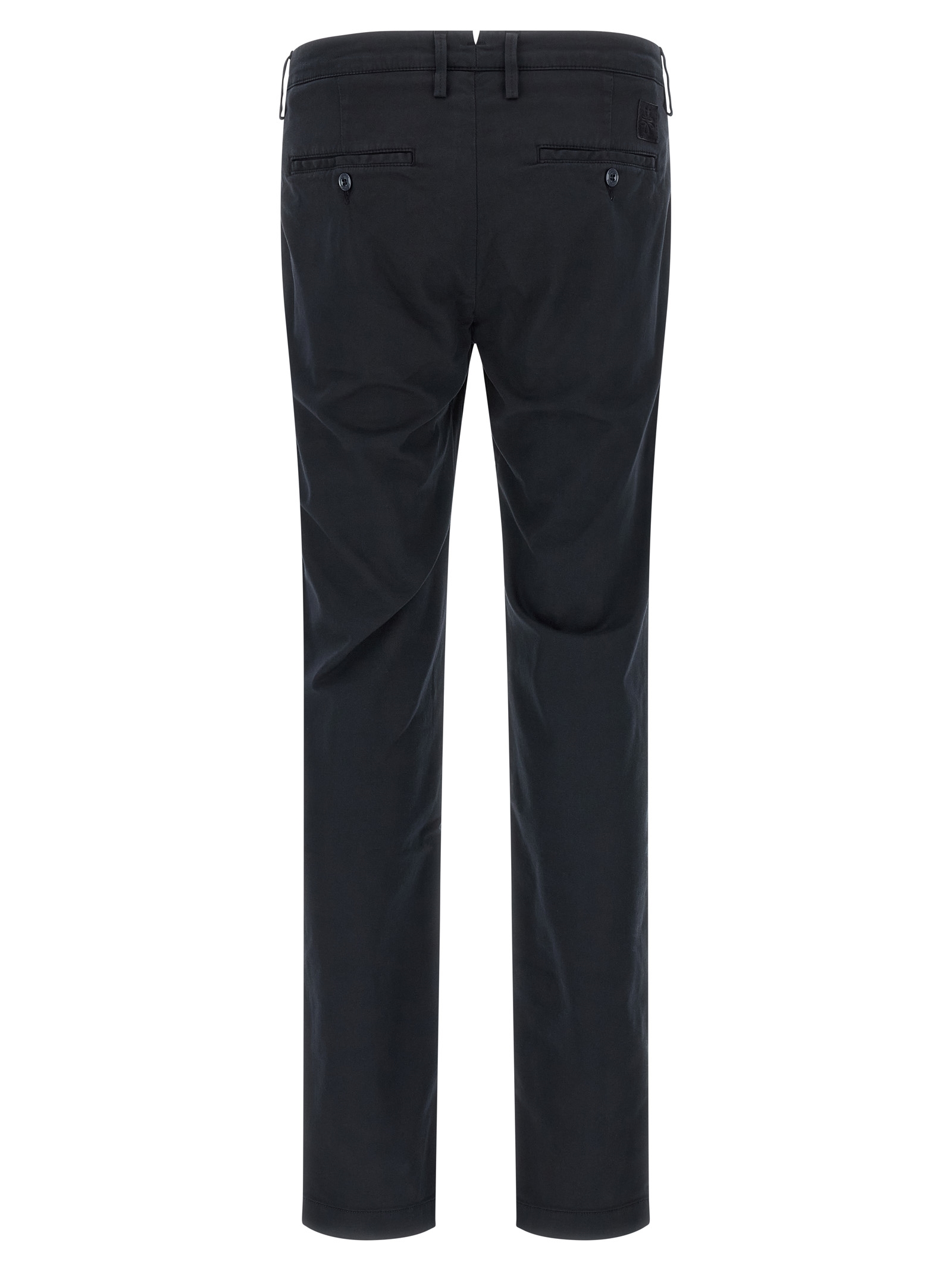 ‘Bobby’ cotton blend chinos, low waist, straight leg, pockets, front zip and button closure, back logo patch.