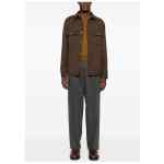 brown button fastening chest pockets long sleeves buttoned cuffs point collar Wool shirt jacket