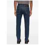 blue classic five-pocket styling button fly belt loops dark wash Slim fit cropped denim jeans