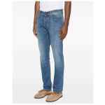blue five-pocket style belt loops button fastening contrast stitching logo patch This piece comes complete with a protective dust bag. Slim fit denim jeans.