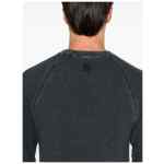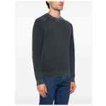 navy blue cashmere knitted construction logo patch to the rear crew neck long raglan sleeves ribbed cuffs and hem Cashmere crewneck sweater