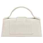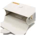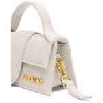 light beige gold-tone logo visible stitching removable adjustable shoulder strap back card slot magnetic closure Le Bambino canvas handbag