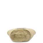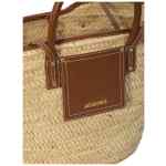 beige woven design leather details two top handles front leather pocket lobster clasp closure Le Panier Soli rafia basket bag