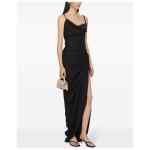 black rear buckle fastening adjustable shoulder straps sleeveless asymmetric neck draped detailing front slit open back asymmetric hem floor-length La Robe Saudade Longue dress