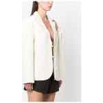 La veste Galliga asymmetric blazer from Jacquemus featuring off-white, linen blend, notched lapels, cut-out detailing, long sleeves, gold-tone hardware, two side welt pockets, buttoned central rear vent, adjustable attached strap and adjustable D-ring fasteners. This item contains at least 50% materials which are certified or widely recognised as having a lower environmental impact through production and/or manufacturing processes that reduce water consumption and the use of harmful chemicals, or re-use by-products of the production process.. Learn more about what makes a product Conscious on our Conscious Criteria page. La Veste Galliga blazer jacket