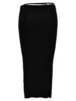 La jupe pralù’ high-waisted stretch viscose skirt with separate lingerie-style band with gold metal logo charm. Size and Fit – True to size fit