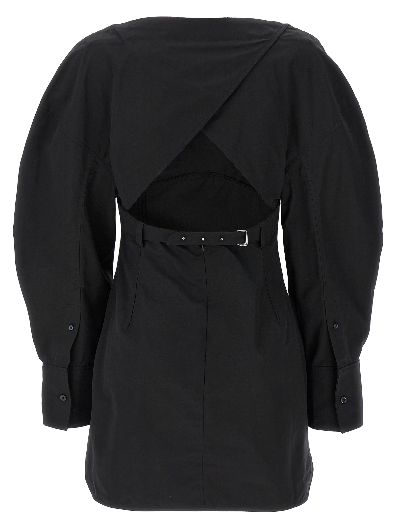‘la robe chemise casaco’ cotton poplin dress with boat neckline, Long wide cuffed sleeves, Cut-out detail and adjustable strap at the back. Size and Fit – True to size fit