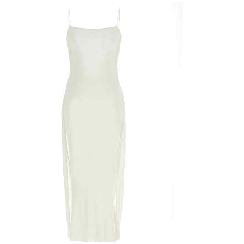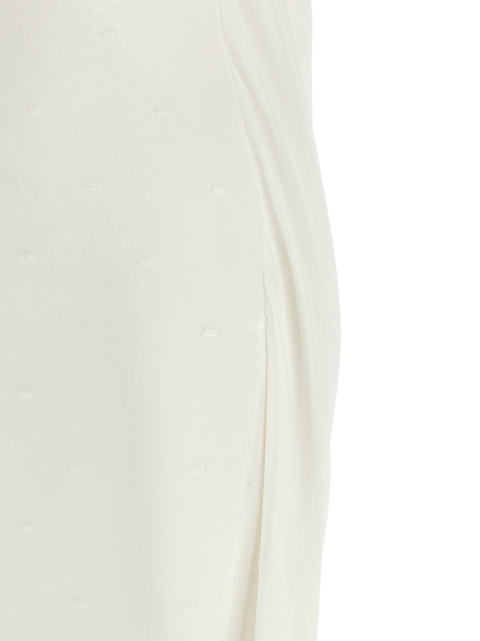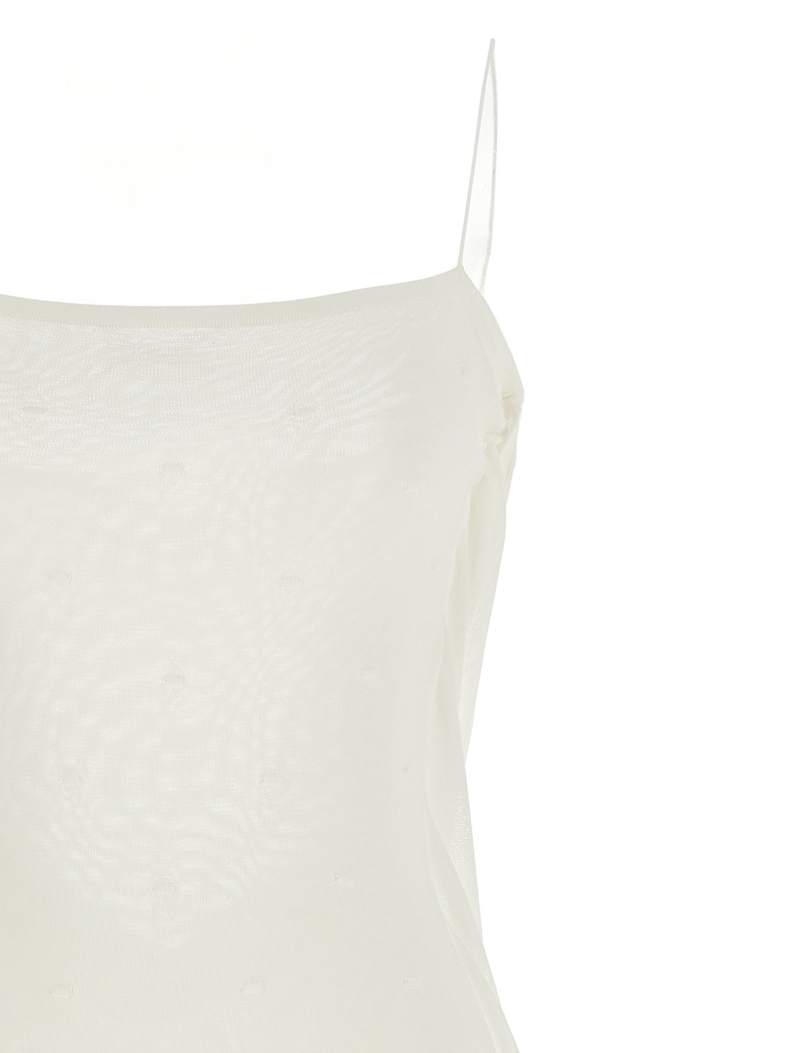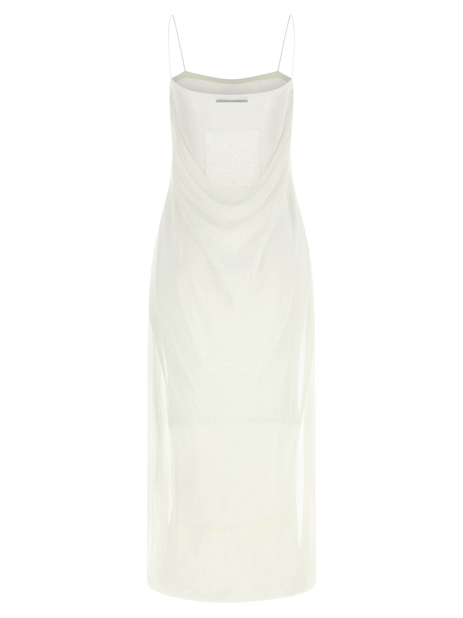 La robe maille plumetis’ long dress in semi-transparent jersey with front structured polka dot pattern, Lining, Front square neckline, Thin straps, Sleeveless, Wide draped hood neckline at the back with insert that falls to the bottom of the garment, Straight silhouette. Size and Fit – slim fit – FRENCH size