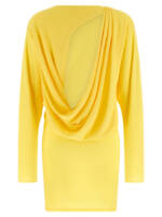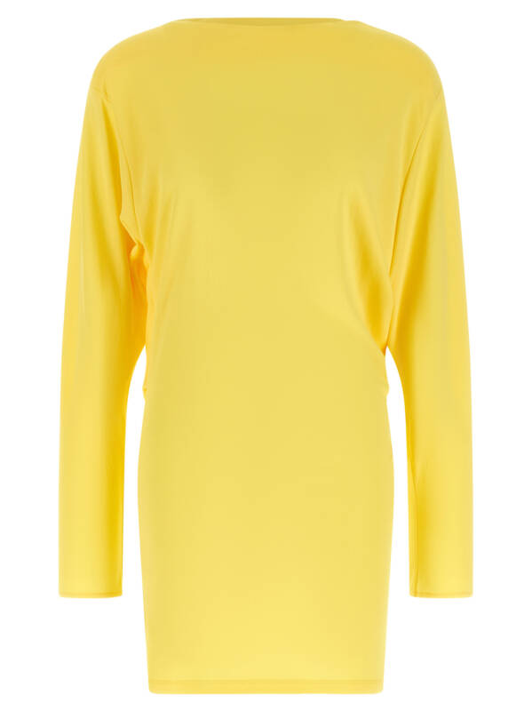 ‘la robe mistral’ fluid viscose jersey mini dress with boat neckline, Wide cut-out and back draping, Long sleeves with dropped shoulders. Size and Fit – Slim fit