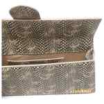 beige snakeskin print single top handle fold-over flap magnetic closure internal slip pocket Le Bambino Long shoulder bag