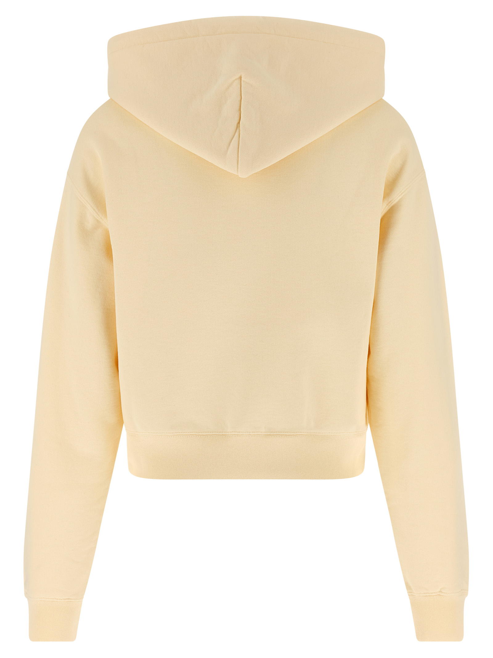 ‘le hoodie gros-grain’ hoodie in slightly fleece cotton, Front logo patch, Crop style, Long sleeves with cuffs and dropped shoulders. Size and Fit – True to size fit