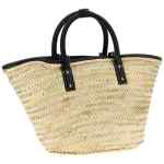 ‘le panier soli’ woven straw shopping bag with leather details, Basket style, Front leather pocket with metal lettering logo, Double fixed tubular handle, Unlined inner carabiner closure, With longer handles to be carried on the shoulder.