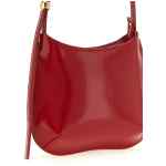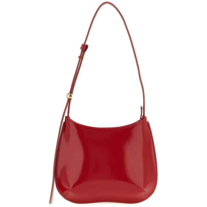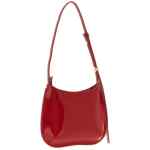 ‘le petit bisou’ glossy leather shoulder bag with front embossed logo, Top zip closure, Adjustable handle.
