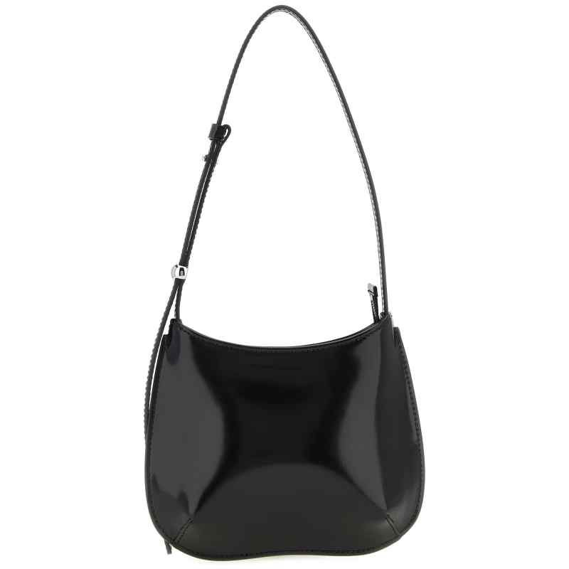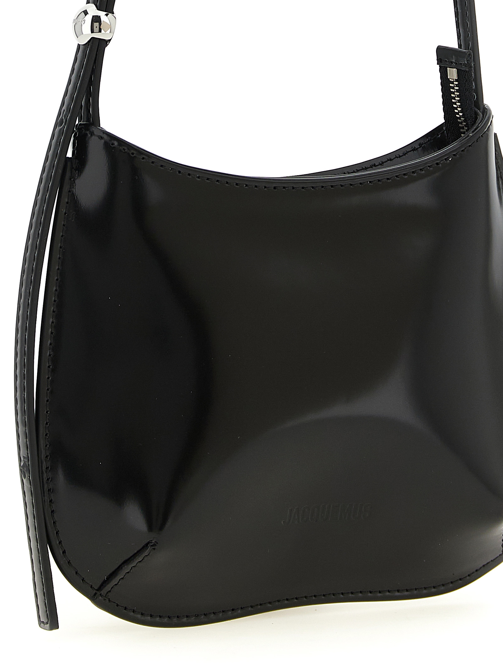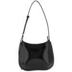 ‘le petit bisou’ glossy leather shoulder bag with front embossed logo, Top zip closure, Adjustable handle. Size and Fit – W 19 x h 14 x d 5 cm