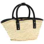 ‘le petit panier soli’ shopping bag in woven straw and contrasting smooth leather, Double short tubular fixed handle, Inner carabiner closure, Front pocket with metal lettering logo, Equipped with longer handles to be carried on the shoulder.