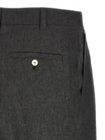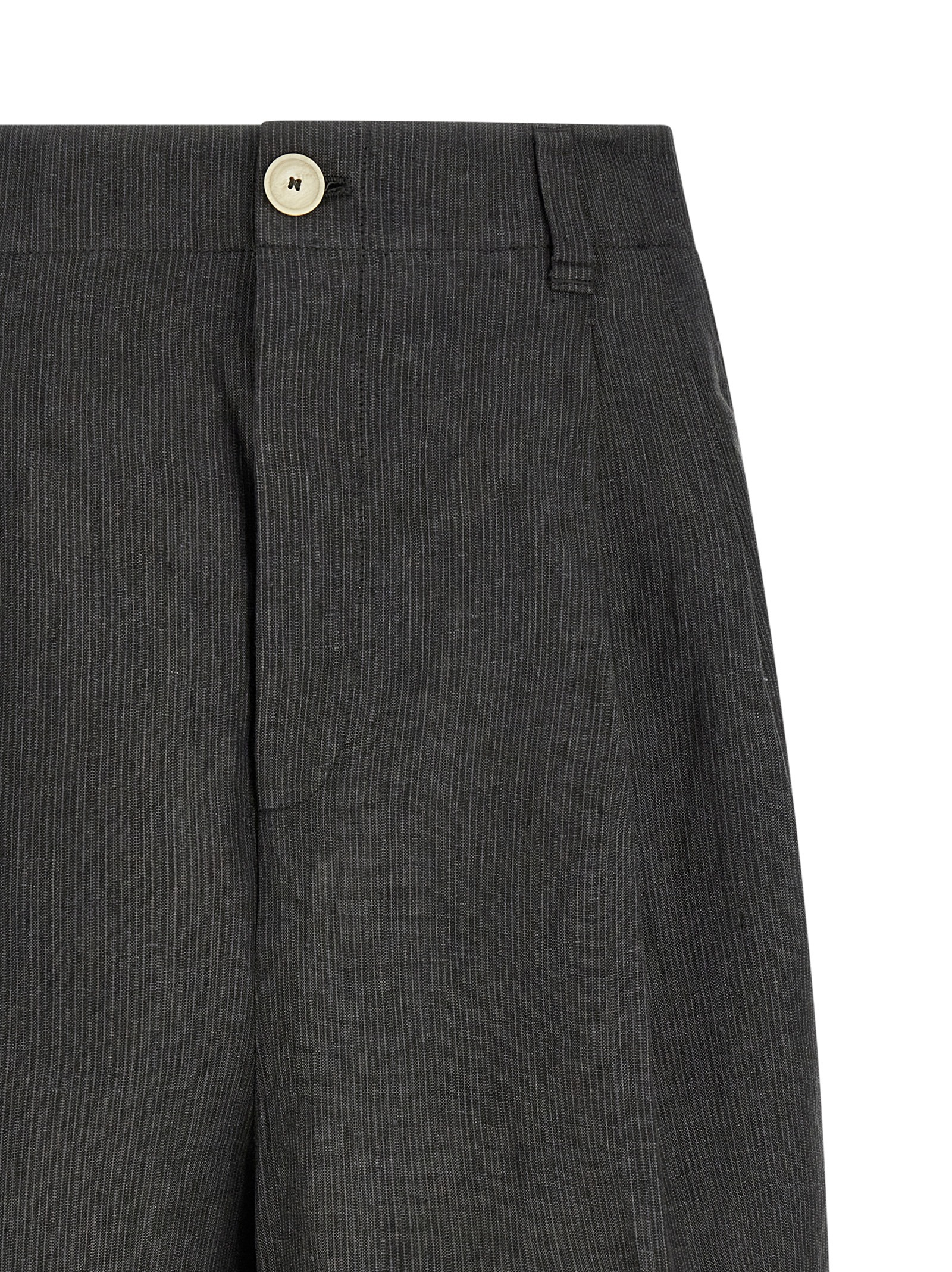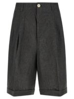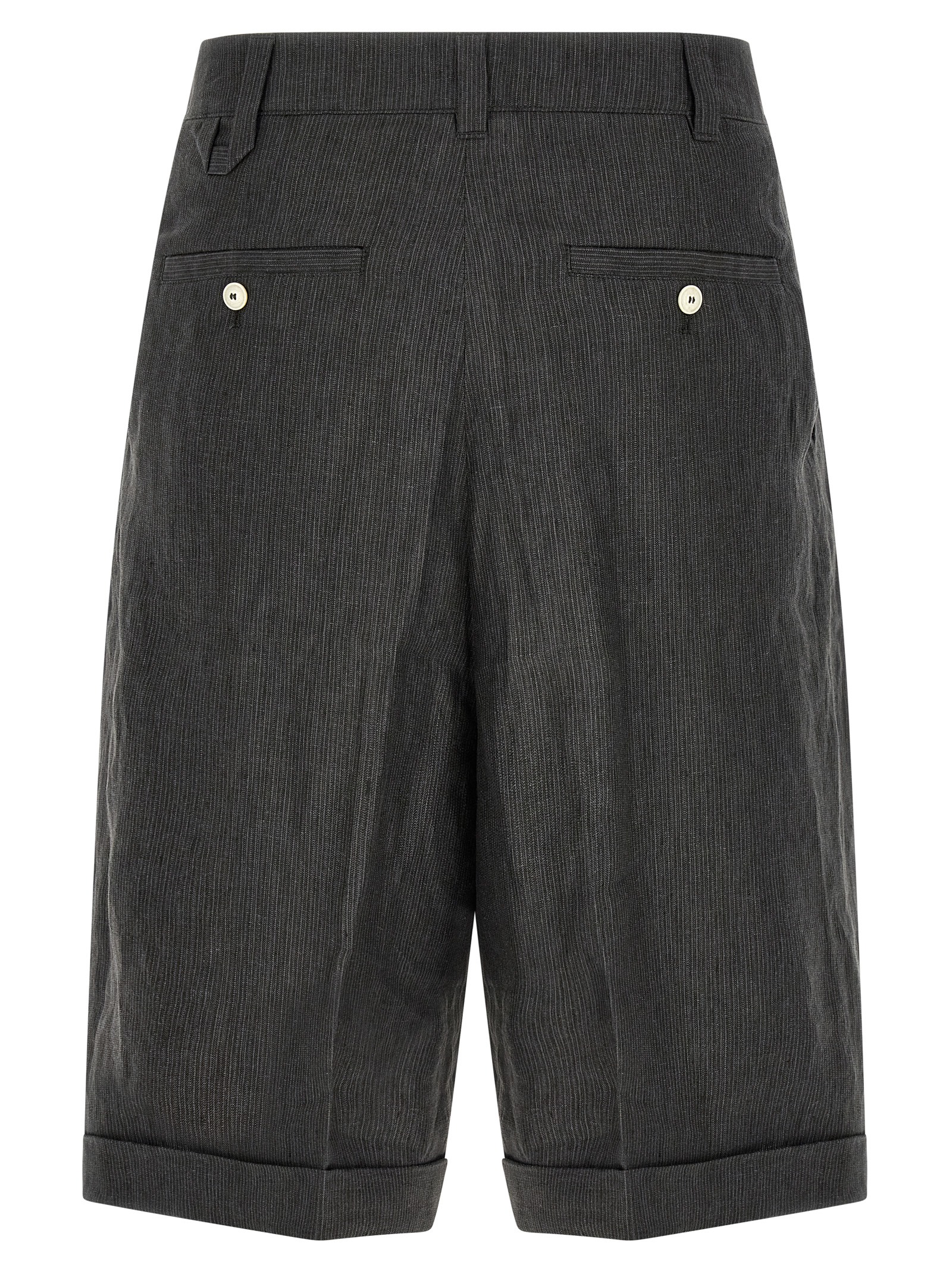 Micro striped linen le short pastro bermuda shorts, Pins, Stretched pleat, Wide leg, Mid waist, Tone-on-tone logo embroidery and front zip and button closure, Front american pockets, Back welt pockets, Turn-up hem. Size and Fit – true to size fit