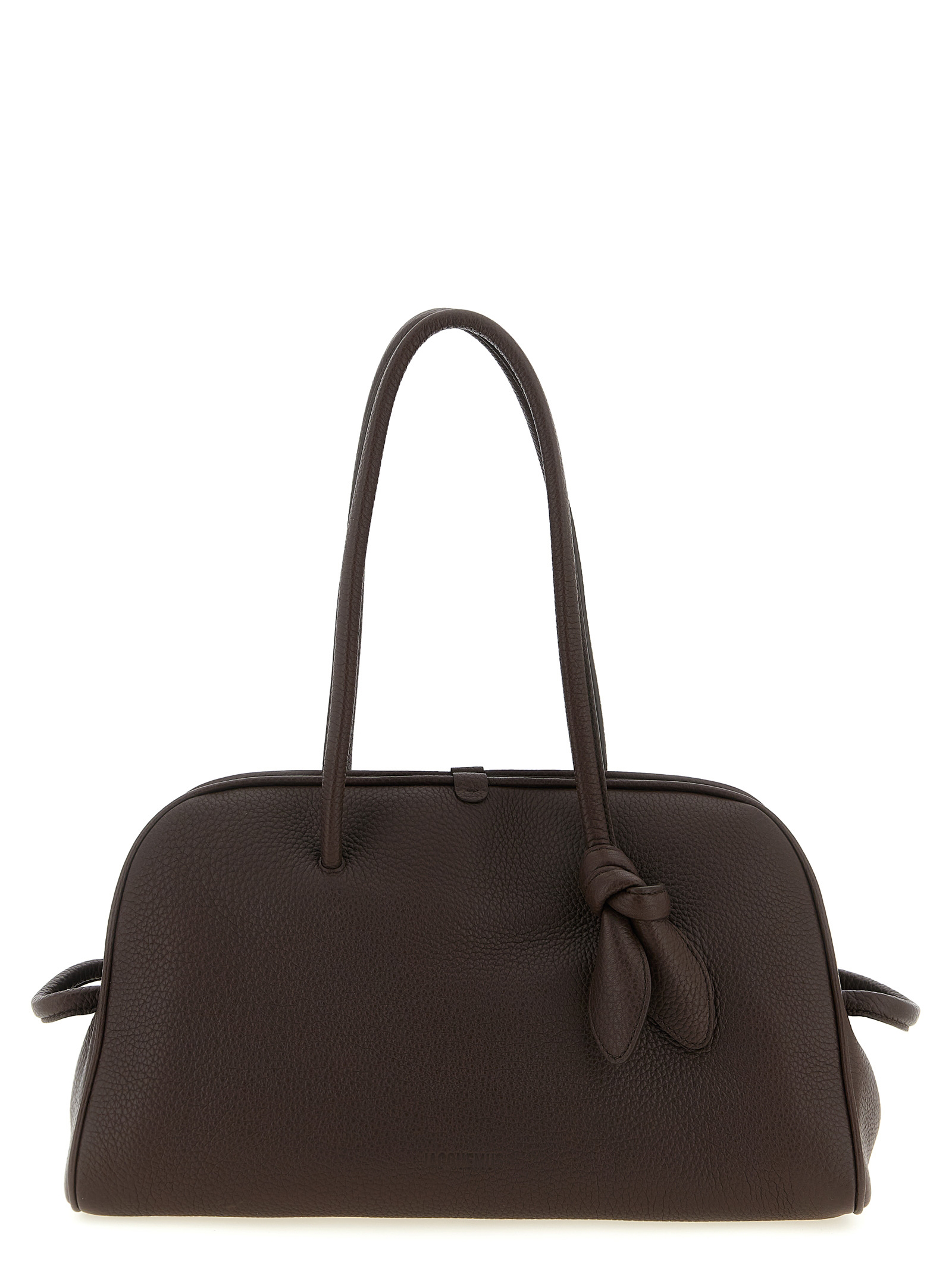 ‘le turismo’ hammered leather shoulder bag in bowling style with front embossed logo, Double fixed handle with tone-on-tone bow detail, Top zip closure._x000d_