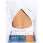 white cotton poplin texture classic collar long sleeves with buttoned cuffs chest patch pocket triangular open back with adjustable belt straight hem front button fastening La Chemise De Costume shirt