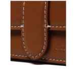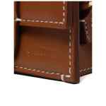 light brown calf leather contrast stitching debossed logo to the front foldover top wrist strap main compartment cotton lining AirPods compatible gold-tone hardware concealed press-stud fastening Le Porte Bambino leather pouch