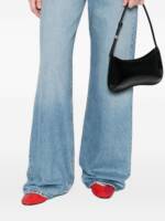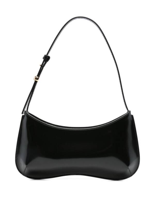 black calf leather curved silhouette single shoulder strap gold-tone hardware subtle stitching detail Le Bisou leather shoulder bag.