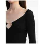black ribbed knit V-neck long sleeves ribbed cuffs and hem Le Haut Pralu top