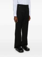 black virgin wool interlock twill weave D-ring findings pressed crease mid-rise belt loops concealed front fastening two side slit pockets two rear button-fastening jetted pockets tailored cut straight leg Le Pantalon Melo