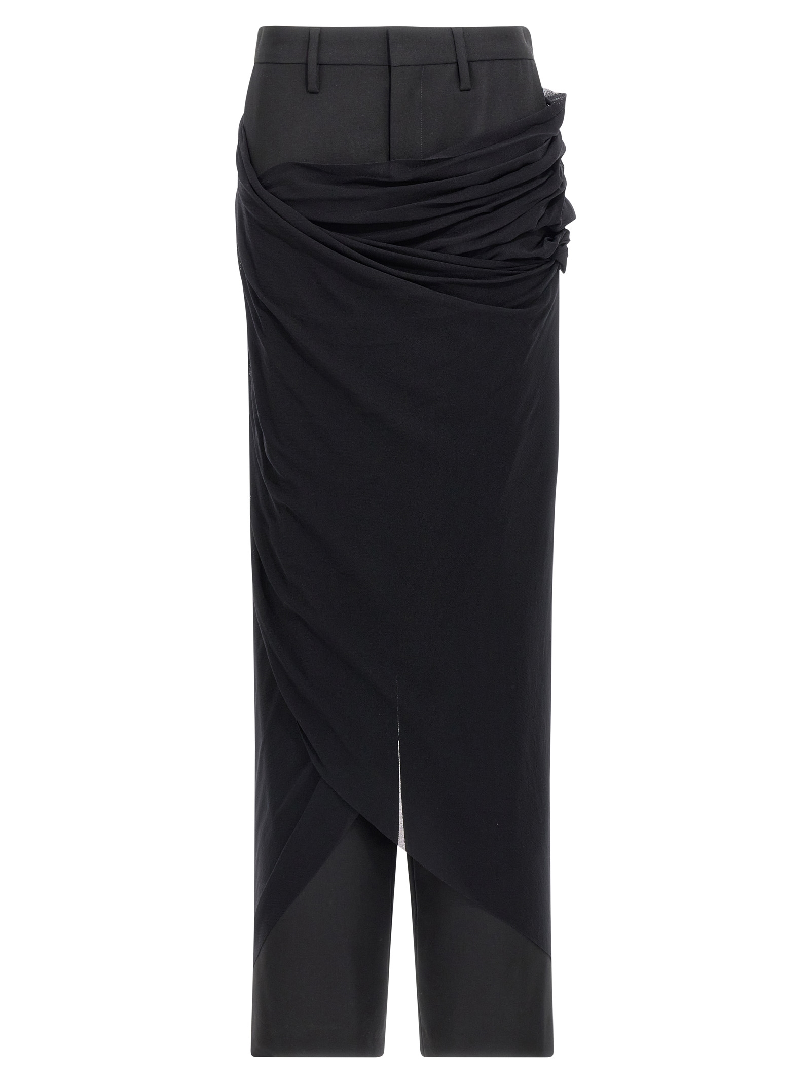 Wool trousers with front tulle draping detail, zip and hook closure, straight leg, high waist model, pockets.