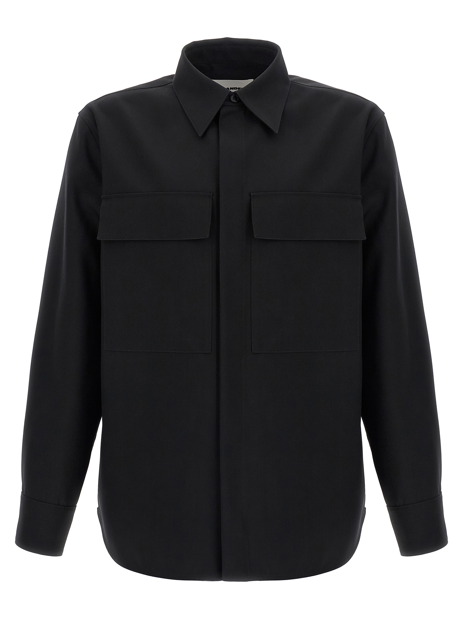 ’08’ wool shirt with front button closure, Pockets, Long cuffed sleeves.
