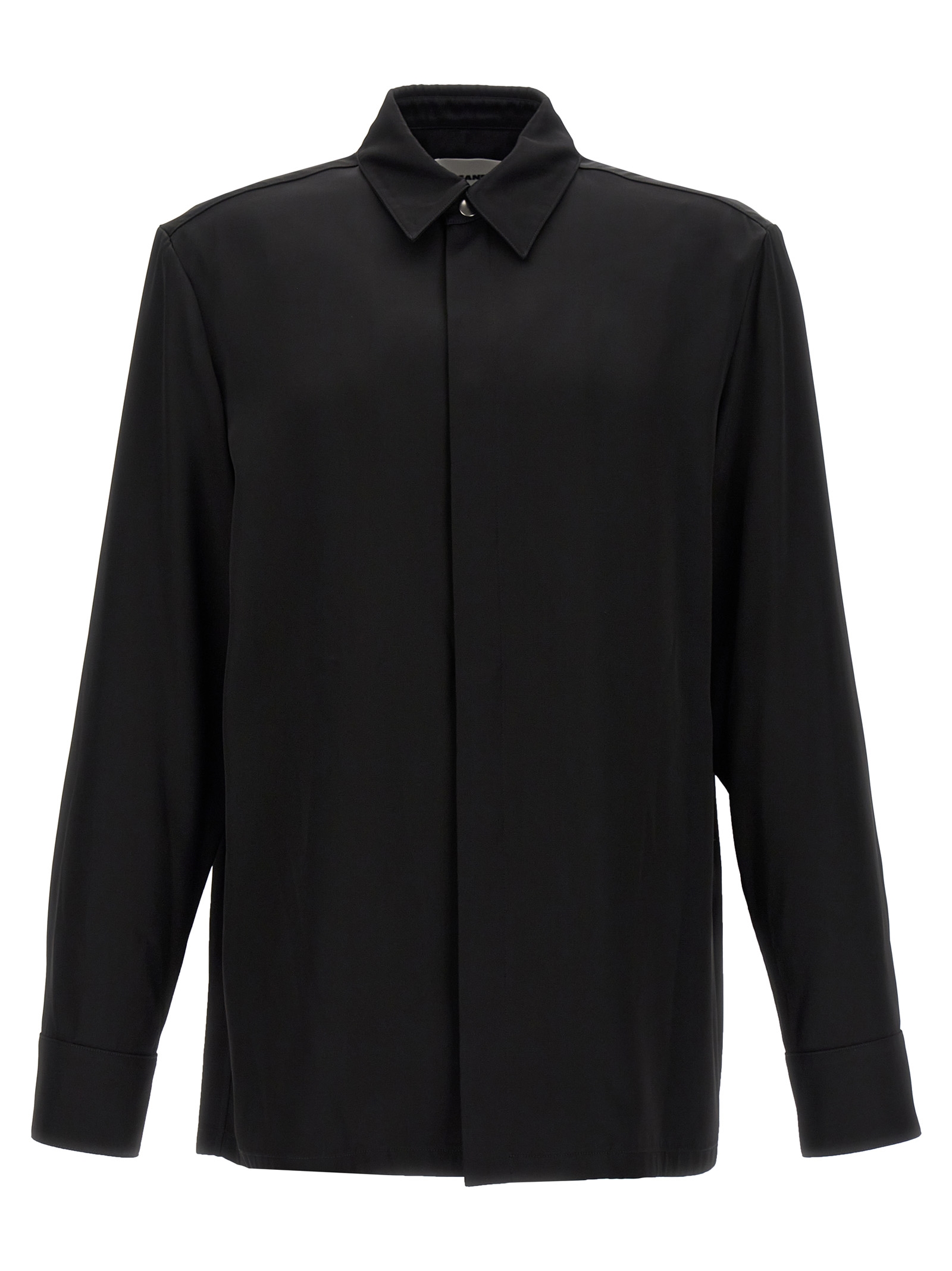‘121’ viscose and silk blend twill shirt, button closure, long cuffed sleeves.