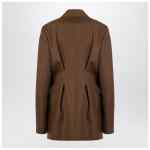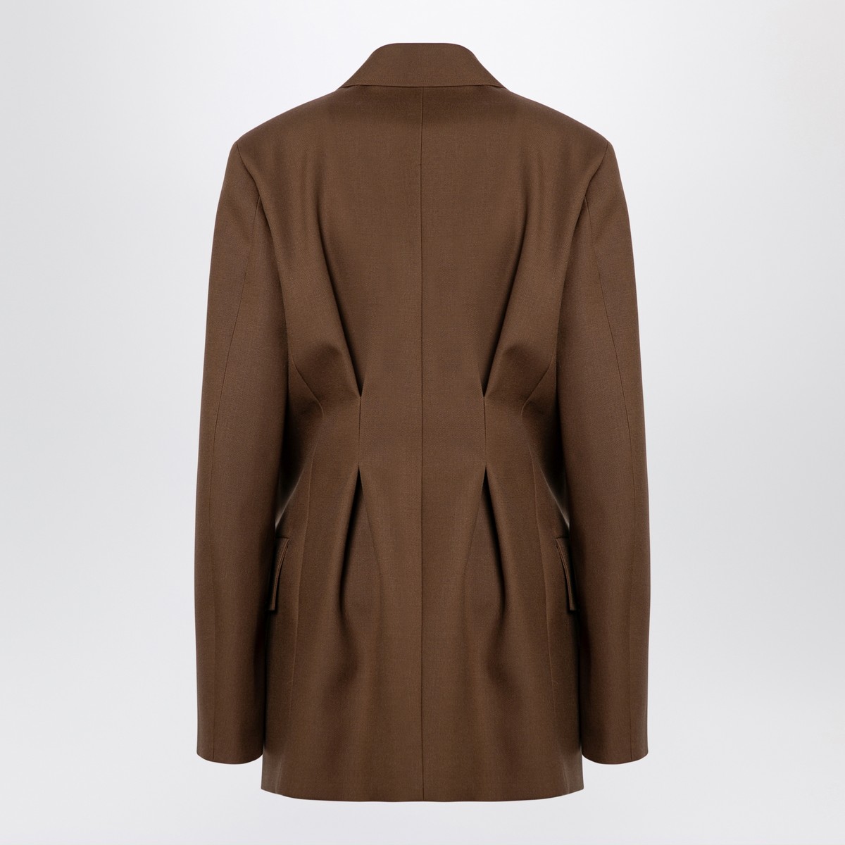 Light-brown wool double-breasted jacket from Jil Sander featuring long sleeves, an oversized boxy cut, wide flat lapels, a concealed double-breasted front fastening, two flap pockets on the front, and stitching at the waist on the back.