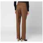 Brown wool Jil Sander trousers featuring front zip and hook fastening, two side welt pockets, two back welt pockets and back vent.