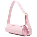 rose pink, adjustable strap, gold-tone hardware, foldover top, tonal stitching, internal slip pocket Cannolo small leather shoulder bag.