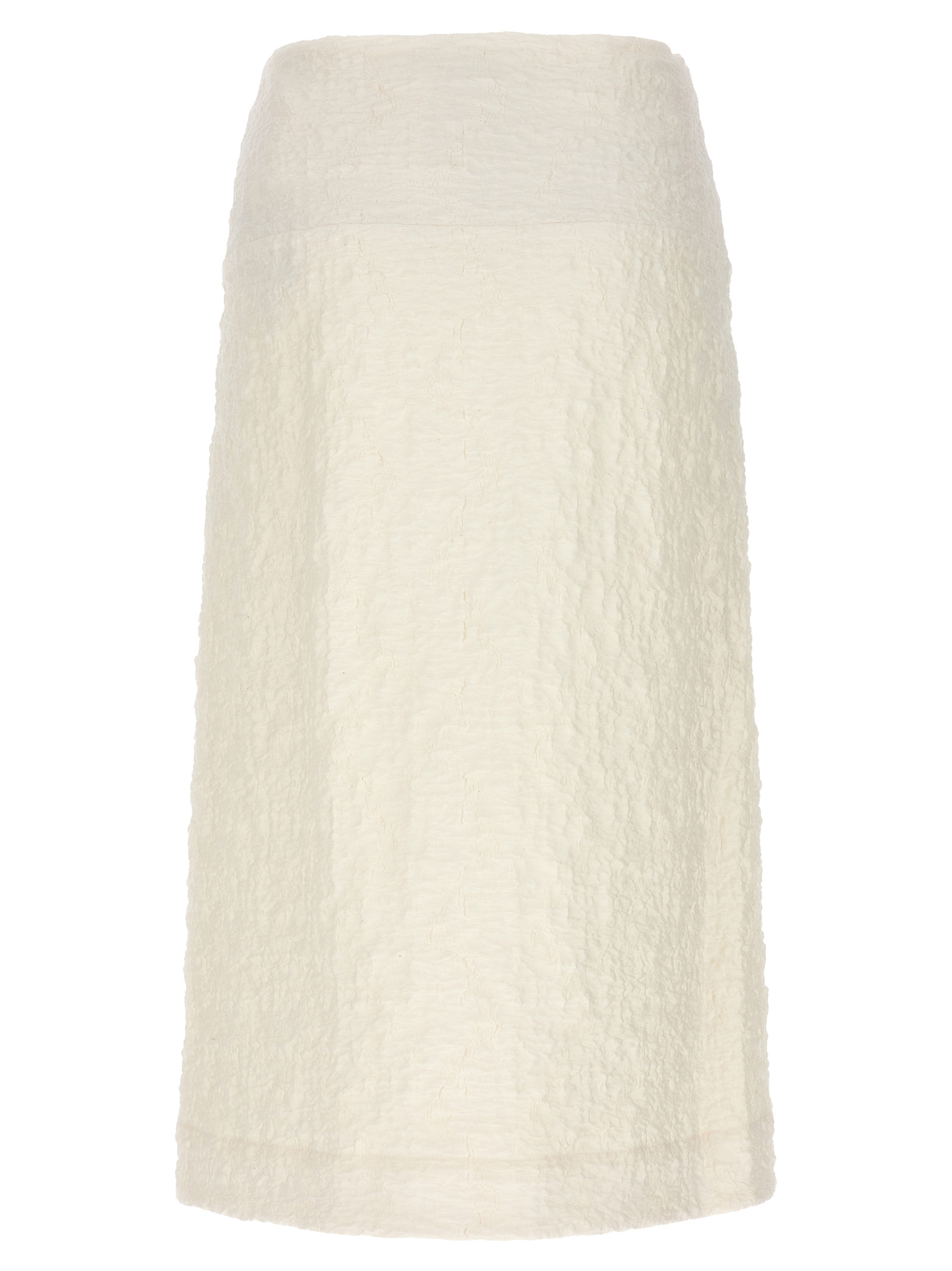 Embossed cotton skirt with front zip closure.