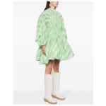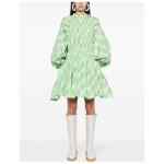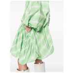 plaid-check pattern minidress from JIL SANDER featuring green, plaid check pattern, leather tag, pleat detailing, round neck, rear zip fastening, three-quarter length puff sleeves, above-knee length and straight hem. Plaid-check pattern mini dress