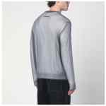 Jil Sander”s grey transparent nylon crew neck sweater with a white cotton t-shirt, featuring a layered design, long sleeves, ribbed edges, and a logo lettering embroidery on the back.