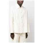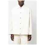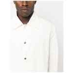 logo-print cotton shirt jacket from JIL SANDER featuring bone white, cotton, logo print to the rear, cutaway collar, front press-stud fastening, long sleeves, two side welt pockets and straight hem. Logo cotton jacket