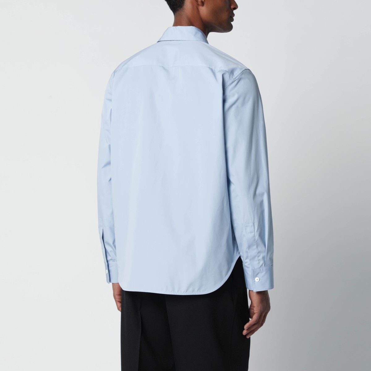 Jil Sander light blue cotton shirt with button front closure, one chest pocket, long sleeves with buttoned cuffs and curved hem.