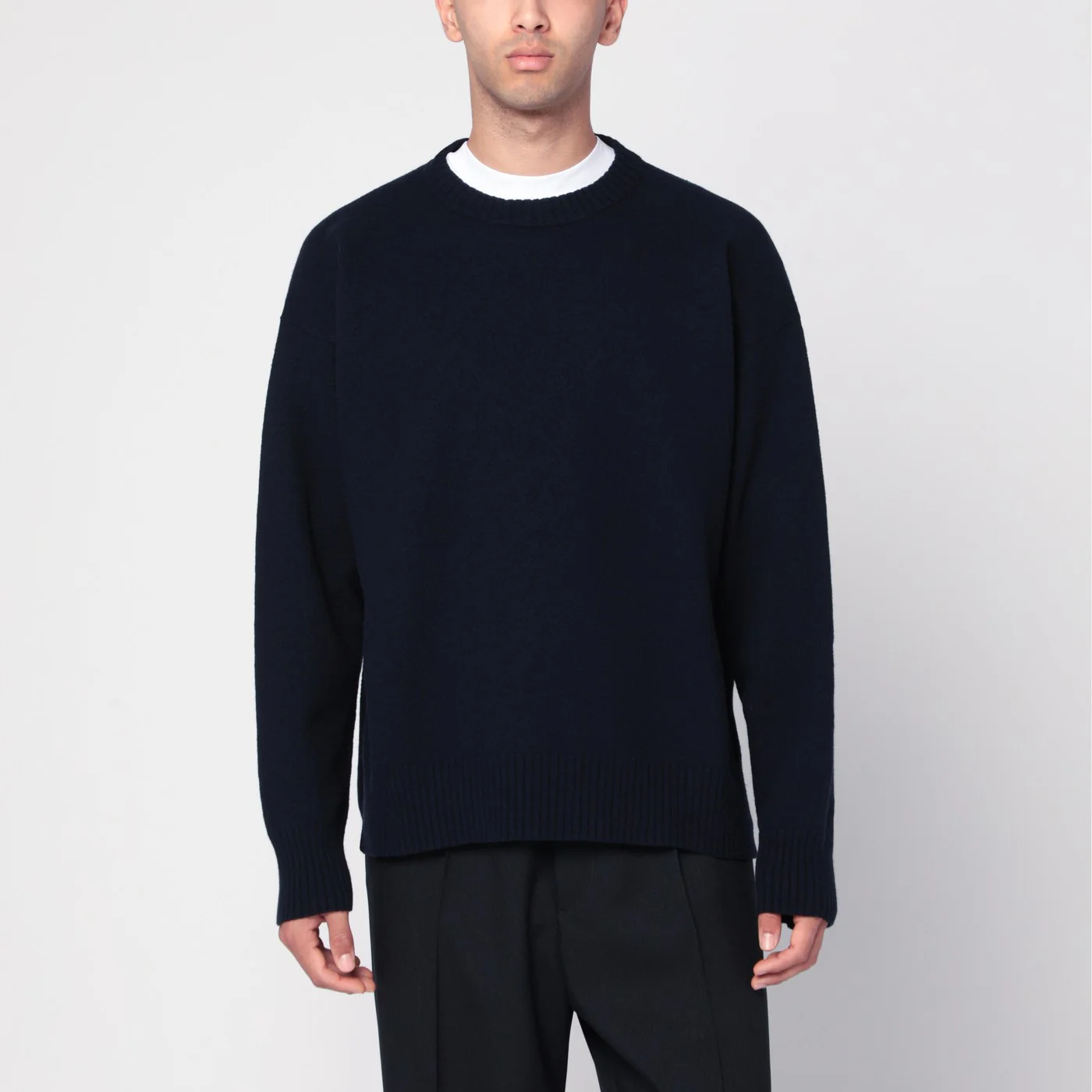 Jil Sander T-shirt in midnight blue cotton characterized by short sleeves and a ribbed crew neck.