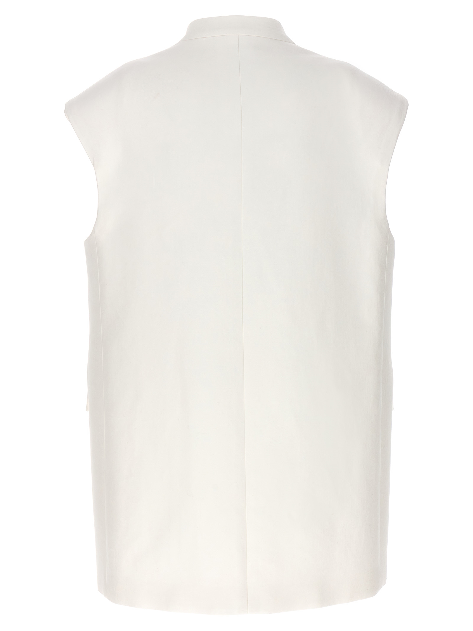 Oversize tailored cotton vest, double-breasted button closure, pockets, removable shoulder padding.