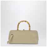 Small shoulder bag by Jil Sander in almond coloured calf leather, characterized by a top handle in bamboo, adjustable and removable shoulder strap, rectangular shape, clutch closure, nappa lining, one internal zip pocket, metal profile, and embossed logo lettering on the front.