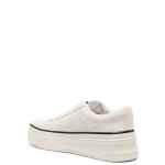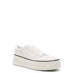 white calf suede front lace-up fastening perforated toebox round toe branded insole suede lining flatform sole Leather sneakers
