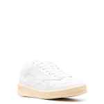 debossed-logo low-top sneakers from JIL SANDER featuring white, calf leather, perforated detailing, round toe, front lace-up fastening, branded insole and flat rubber sole. Basket low-top leather sneakers