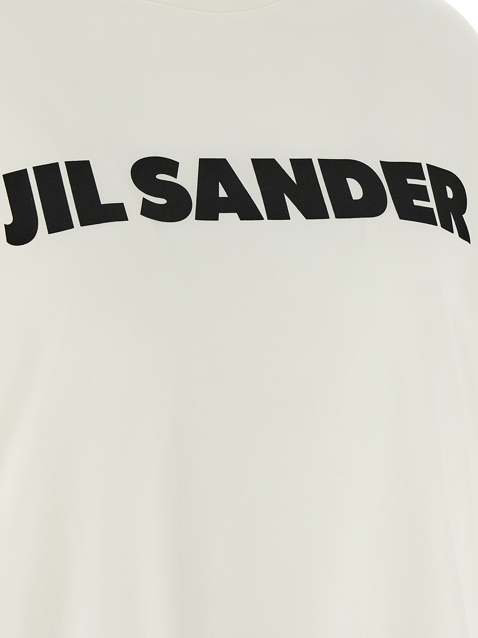 Light cotton jersey T-shirt with contrast ‘Jil Sander’ logo print on the front, crew neck, short sleeves with dropped shoulders.