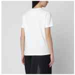 White cotton T-shirt by Jil Sander, featuring short sleeves, ribbed crew neck, and contrasting logo lettering print on the chest.