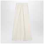 Wide Jil Sander pants in a viscose and silk blend in cream colour, characterized by a high waist with belt loops, front closure with zip and hook, two side welt pockets, two back welt pockets, and pleats at the front.