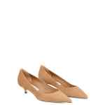 toffee suede upper pointed toe kitten heel leather sole low-cut vamp Amelia suede leather pumps