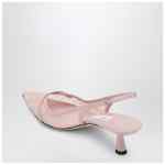 Jimmy Choo pink leather and lace slingback pumps featuring a pointed toe design, strap with pearl detail and stiletto heel.