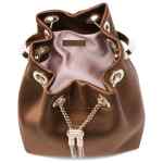 brown ring top handle chain strap tassel detail drawstring fastening metal eyelets This piece comes complete with a protective dust bag. Bon Bon leather bucket bag