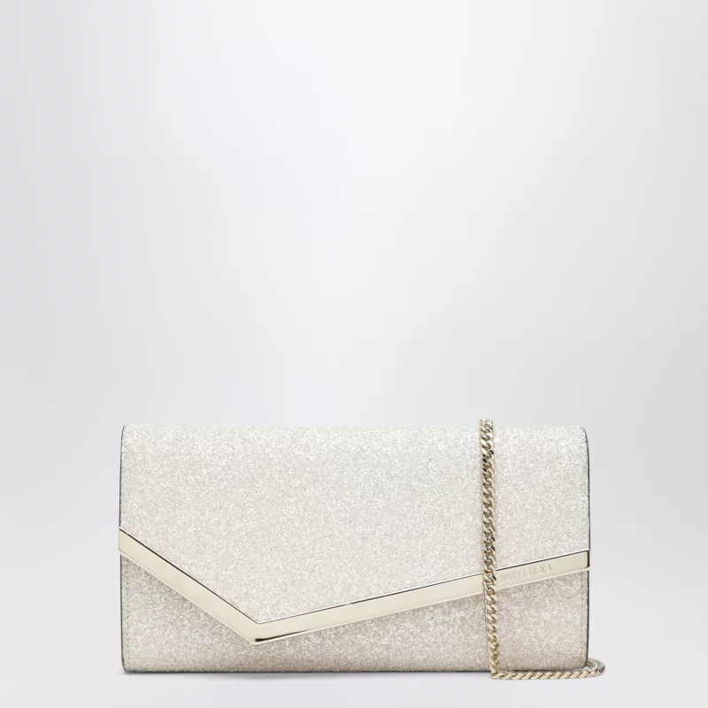 Jimmy Choo Emmie Pouch With Light Gold Micro-Glitter
