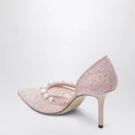 Jimmy Choo Pink Lace Décolleté with Pearl Decoration